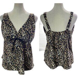 LASCANA VENUS Tankini Swim Top Animal Print Adjustable Straps Black Brown 14 9-4