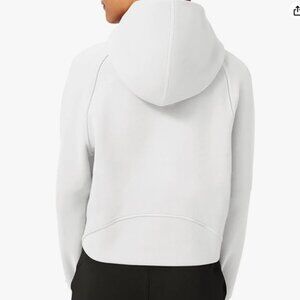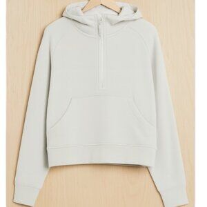 LASLULU Cropped White Fleece Lined Collar Pullover 1/2 Zipper Sweatshirt, S