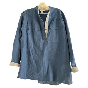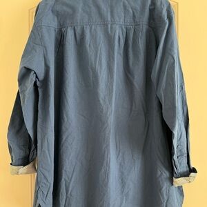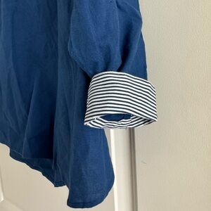 The blue striped pattern adds a touch of style to this basic button-up top, which features long sleeves and cuffs.