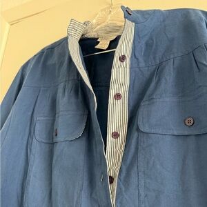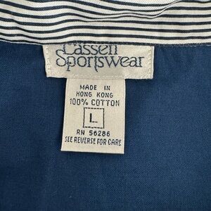 LASSEN SPORTSWEAR Vintage Women’s Blue Stripe Cuff 4 Button Top-LARGE