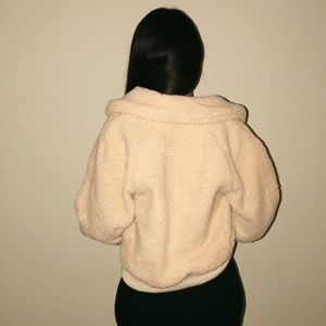 LAST 1 Beige Fluffy Teddy Cropped Bomber