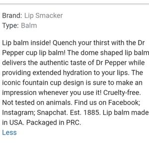 🖤Dr Pepper Cup Lip Balm🖤Dome Shaped Lip Balm Delivers Authentic Dr Pepper Taste🖤Extended Hydration🖤Makes a Cute Gift🖤Perfect Stocking Stuffer for the Upcoming Holidays🖤Brand New In Package 🖤Free Gift With Purchase🖤Fast Shipping 🖤🖤🖤🖤🖤🖤🖤🖤🖤🖤🖤🖤🖤🖤🖤🖤🖤🖤🖤🖤🖤🖤