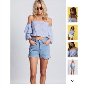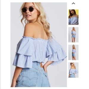 Pinstripe trendy off shoulder top!