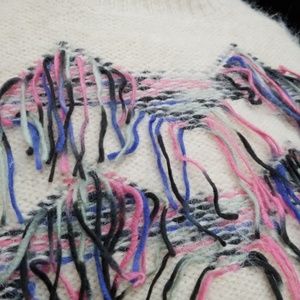 This Fuzzy knit sweater top with multi color fringe detail will keep you happy and warm all season!!