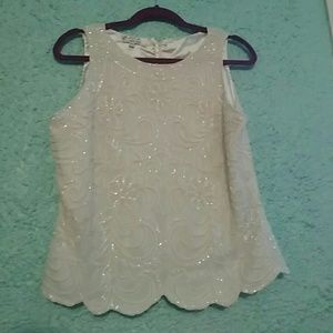JKARA top from macys. Large. Zips in back. Ivory/off white. (Spot in back missing a few beads, and a few beads in front - price refelcts flaws.)