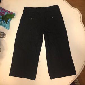 Up for grabs are these adorable peddle pushers by D&G. They were pants, that were brought up to peddle pushers. The left leg was not hemmed all the way, so there is a safety pin on one end. The hem could be easily brought down, however they still won't be full on slacks. The size tag is missing, but are similar to a size Medium. The approximate measurements laying flat are: WAIST 15" , Legs (waist to hem) 28" , Inseam 20" , Rise 9.5" Please feel free to make any offers :]