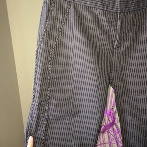 Awesome pair of Pinstripe pants by Marc Jacobs in navy blue and cream colors. Tuxedo like style with panels running down the sides of the legs. Very flattering design. Bootcut. Great for the office or a day in the town. Excellent condition, only missing the button and clasp, which is an extremely easy fix. Please feel free to ask any questions or make any offers! Thank you!