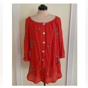 LAST CALL Anthropologie Fig and Flower Boho Top Size 1X Orange Floral Embroidery