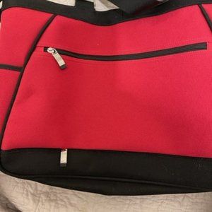 Studio D Large Tote w/Laptop Case. This cute red and black quilted cushion fabric with black leather trim is new with tags. Has a black, white polka-dot lining with a matching removable laptop protection case. This item is brand new with tags and in good condition. No rips, tears or stains.