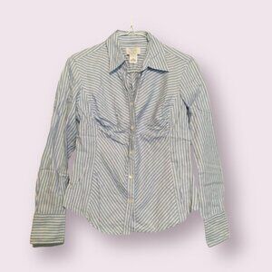 10 fit & flare dresses, tops, and shorts in size XS, XXS, and 2P (the blue button-down shirt). Brands include LOFT, Ann Taylor, C&E, Xhilaration, New Balance (shorts), Jasmine & Ginger, and Francesca's (black and white dress, which is a small, but fits like XS). Colors: pink, peach, blue, grey, black, and purple. Sleeveless, long sleeve, and short sleeves. Pre-owned in excellent condition.
