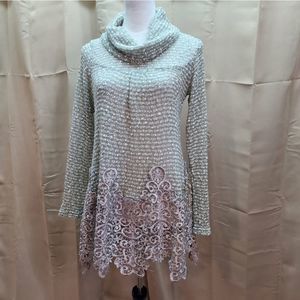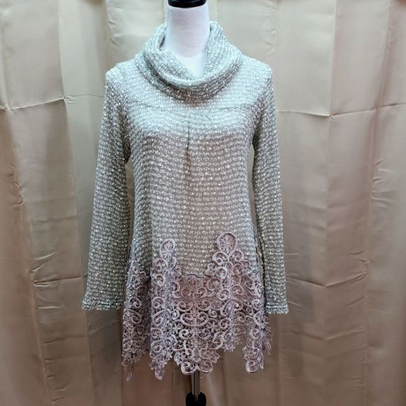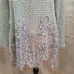 LAST CHANCE Anthropologie Ryu Mint Green Lace Trim Cowl Neck Sweater Size Medium