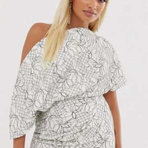 LAST CHANCE Asos Design Petite Fallen Shoulder Lace Mini Dress