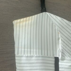 Beautiful cinching striped corset top to wear out or under a blazer. Hook closure down the front and adjustable straps. Please see photos for yellowing, have not taken to cleaners.