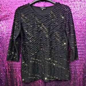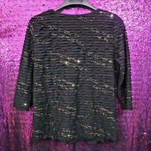 LAST CHANCE - BLACK SEQUIN RUFFLE TOP M Retro 90s Y2K Goth Metallic Gold Casual