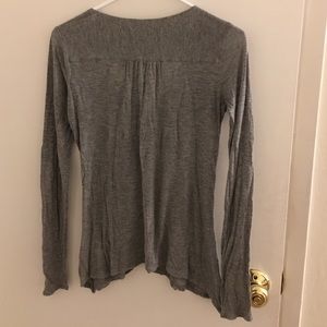 Grey. XXS. Sheer with two layers of front. Slight gathering in the back. Pilling all over but otherwise in good condition.