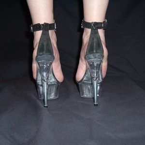 Last chance, NO more reductions heading to the trash shortly New, NO BOX, Genuine "Tony Shoes" Black suede and rhinestone platform Heel sandals, size 5 Clear platform bases Make offer
