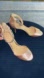 Blush kitten heels by Jewel Badgley Mischka. Size 5 1/2. Features: satin sheen material with a jeweled ankle strap, open toe, and zip up back. Heel height: 3 inches.