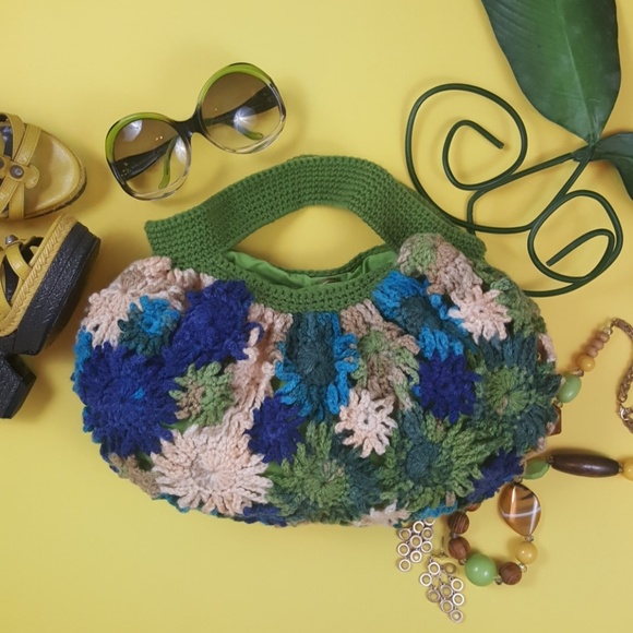 LAST CHANCE! CLOSET CLOSING! Boho hobo-style crochet bag blue green