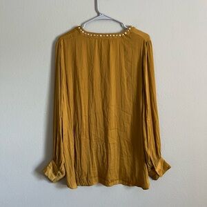 ❌LAST CHANCE❌ Carmen Marc Valvo Mustard Yellow Long Sleeve V Neck blouse large