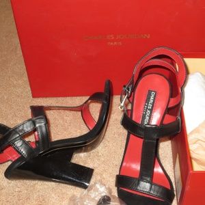 Last chance, NO more reductions heading to the trash shortly Brand new, in the box, Charles Jourdan, "Leah" black chunky heeled sandals, size 5.5 These are a bit small for me so I really think they need a new home, extra heel taps are included. Make an offer 00005