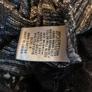 Super comfy, loose hanging top with lace trim on the bottom. Looks great styled with shorts or jeans.