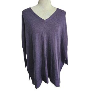 Eileen Fisher merino wool jersey knit box top in "Grape" with v-neck.