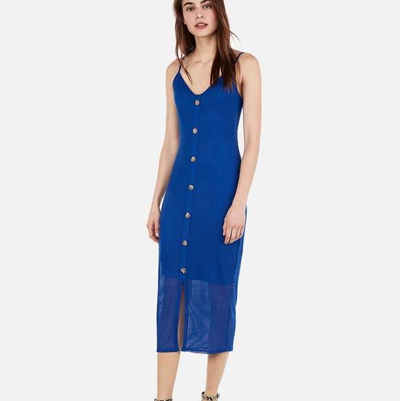LAST CHANCE Express Button Ribbed Button Front Midi Dress