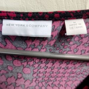 Beautiful, slenderizing NY&C black/maroon ruched dress, 3/4 length sleeves, size M. Looks great with pumps or flats, all seasons! Paid $70 new, selling for $30.
