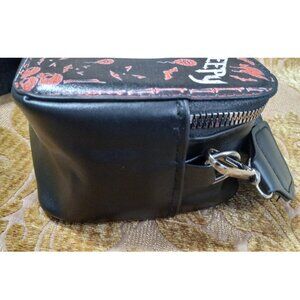 A cool Goth Keep Kreepy Skeleton crossbody pouch made of vinyl/PU Leather with an adjustable polyester strap. In good condition, a smoke free home.