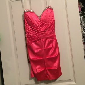 EVERYTHING MUST GO *LAST CHANCE* Hot pink strapless sweetheart dress with silver sequence above the breasts. Ends right above the knee. Worn once! Accepting all reasonable offers