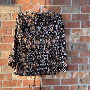 LAST CHANCE Jacket Blazer Size Large Brown Black White Pattern Tie Waist Collar