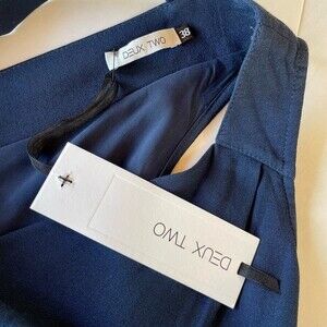 LAST CHANCE! NWT Deux Two Paris Drape Neck and Low Back Shift Dress in Navy 8