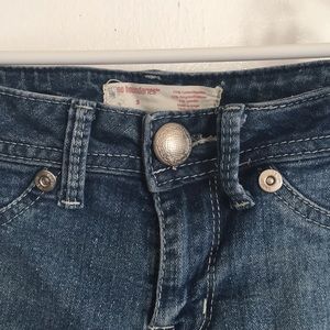 Cute blue streach denim capris with stitched cuffs. Used, plenty of life left! Says size 5 but fits like a 4