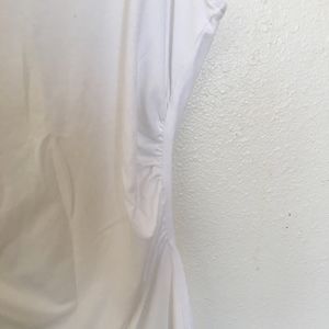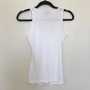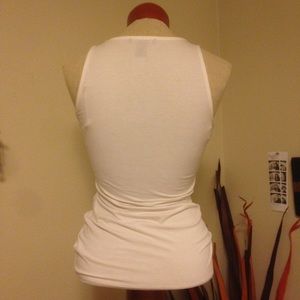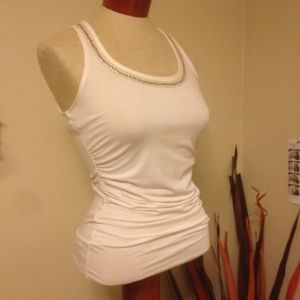 White tank! Rouged on the sides to make perfect waistline! The sequins are silverfish/goldfish color so it's very versatile! XXS but can fit XS/S. Stretchy and comfortable.