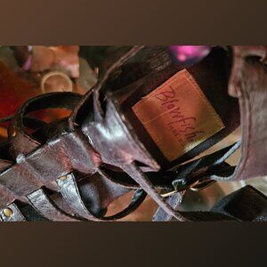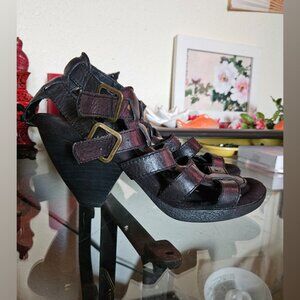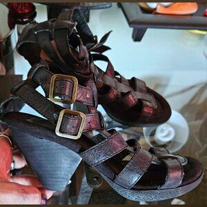 Y2K vintage Blowfish strappy/gladiator sandals/heels-ankle high bootie style-appears/feels like soft leather upper, but unsure(tag doesn't clarify material)-comfy/cushion-2 ankle straps with buckle closures/adjustment-open toe-brass/bronze studded-open toe-triangle pointed block heel-3" heel/.5" platform-size 6.5 (can fit 6/6.5-more towards 6.5)-good condition (signs of wear/age still lots of life-refer to photos-sole has minor repair, doesn't affect function or look of them)-