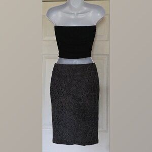 90s /Y2K vintage Xhilaration pencil skirt-black and grey abstract animal print-soft/comfy/fitted/stretchy-pull on-knit sweater feel-elastic waist-small belt loops (can be cut off)-medium weight (poly/span)-knee/below knee length-size XS (fits like XS/S)-20" length, 14"waist/16"hip (flat/unstretched)-very good condition--