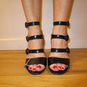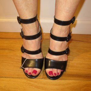 LAST CHANCENIB OVYE by CRISTINA LUCCHI ITALY Black Block Heeled Strappy Sandals