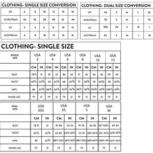 Size 2,4,6, 8 and 10 (please refer to sizing chart in the last image and contact us with your size preference).