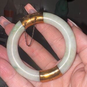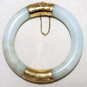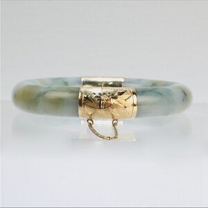 LAST DROP❤️❤️Vintage authentic 1940’s Jade & 14 Karat Gold Hinged Chinese Bangle