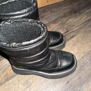 Bought off Shopbop for $280, real wool lining and goatskin outer. Basically waterproof in my experience and surprisingly durable