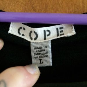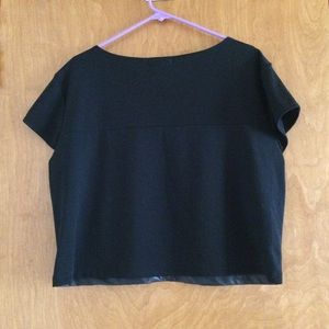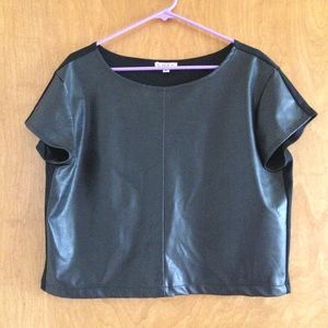 This is a size large faux leather boxy crop by the brand Cope (purchased at Urban Outfitters). The front has a shell of faux leather in two panels sewn vertically together at the center. The back is a jersey-like material that is sewn in three parts creating a T shape. This particular side attracts a lot of hair and other excess therefore I cannot promise it to be lint/hair free upon arrival. Inquire for more photos and info. Trades and offers accepted.