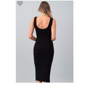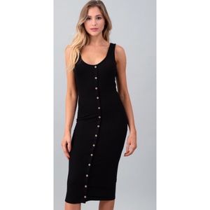 Double Scoop front button midi dress. -Featuring Knit, Fitted, Midi Length and casual style -All over snap button down front -66% Rayon 22%polyester 5%spandex