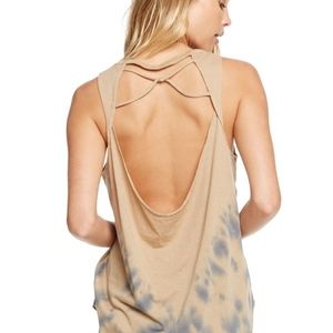 Say hello to our favorite (anything but) basics yet! We are absolutely obsessed with this vintage inspired jersey tank top. It features a crew neck and a cut out strappy draped back!