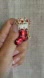 Charming red Christmas stocking brooch with gold accents and candy canes. Perfect for holiday outfits.