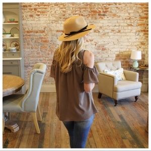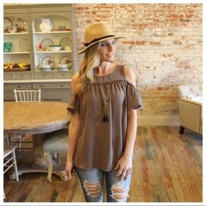 LAST ONE! Dark Taupe Cold Shoulder Tunic
