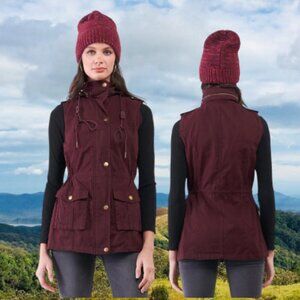 Get ready for adventure with this 100% Cotton Denim Casual Military Hooded Lightweight Sleeveless Drawstring Vest. Travels well with a pack anywhere design. Easy to layer with it's relaxed fit. Color is deep burgundy.