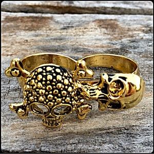 LAST ONE!! Gold Two-Finger Skull Ring! NEW!