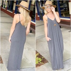 LAST ONE! Gray V Neck Cami Maxi Dress