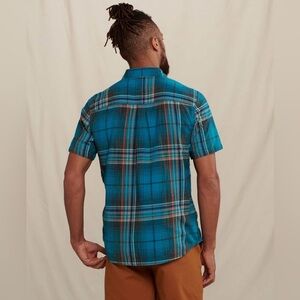 LAST ONE! NWT Toad&Co M Smythy 100% Organic Cotton Aqua Plaid Button Up Shirt