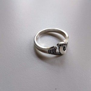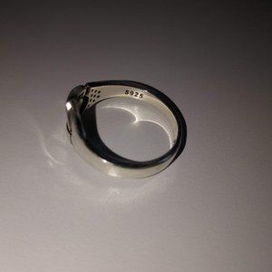 Be on the edge of fashion with this shiny 925 stamped Sterling Silver band with zircon-encrusted interlocking motif at top.